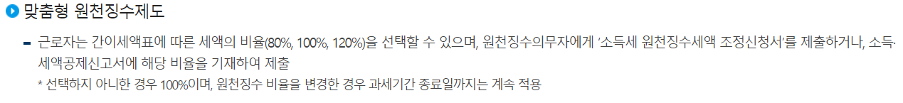 근데 이걸 80 100 120 중에서 선택할수있어요. 맞춤형 원천징수제도