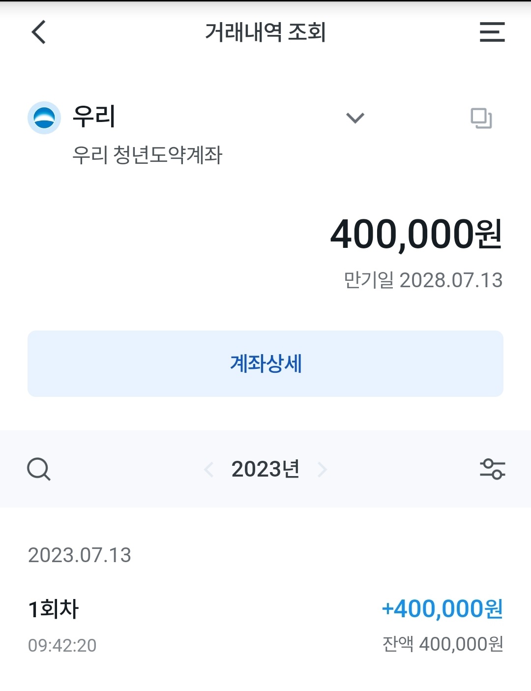 지난달 6월15일에 IRP를 만들어서 못만들고있다가 계좌개설 20일이 드디어 풀려서 우리은행에서 계좌를만들고 청년도약계좌에 가입했습니다.