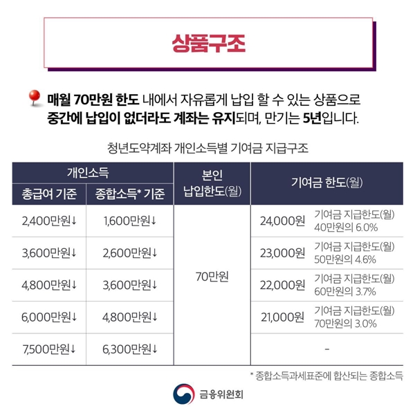 정부에서 소득별 기여금을 지급하고 시중금리보다 높은 금리를 주는 자유적립식 적금