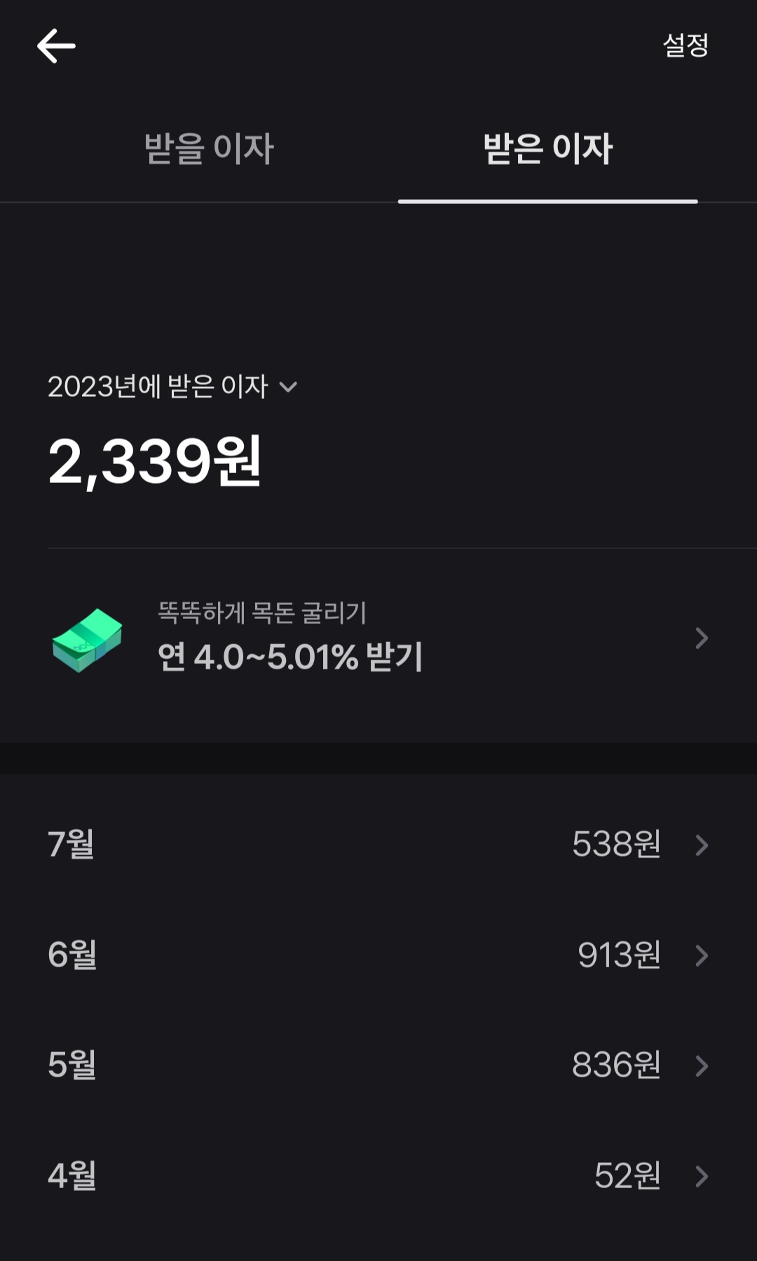 이유는 토스뱅크, K뱅크에서 매일 이자 받는 재미가 은근 있다는 점입니다.