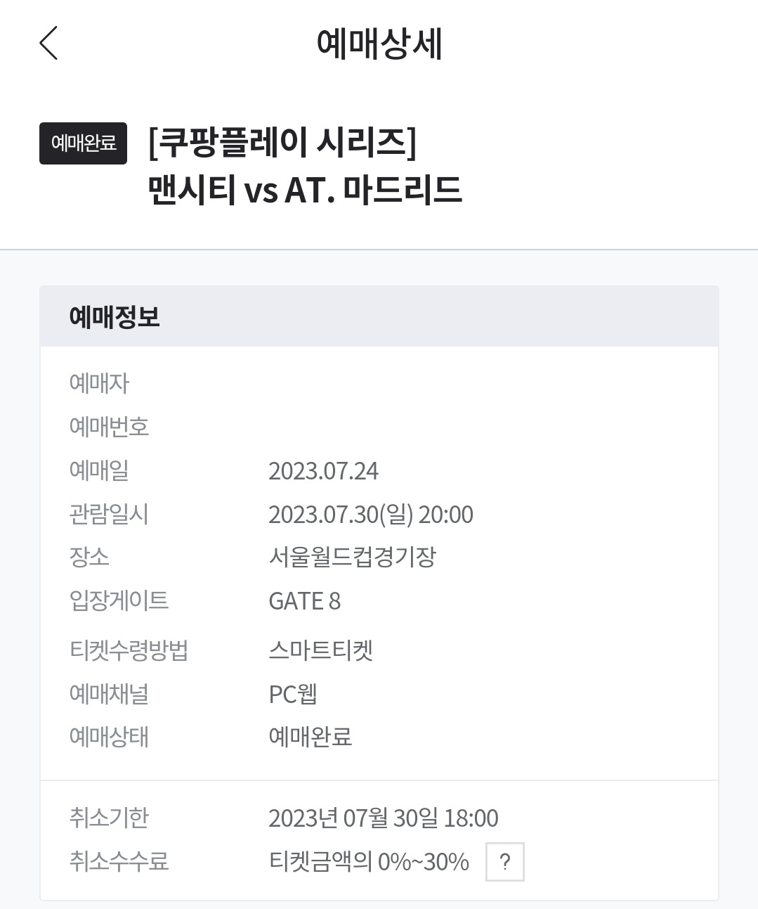 맨시티 vs 아틀레티코마드리드 쿠팡플레이 시리즈 취켓팅에 성공 하였습니다.