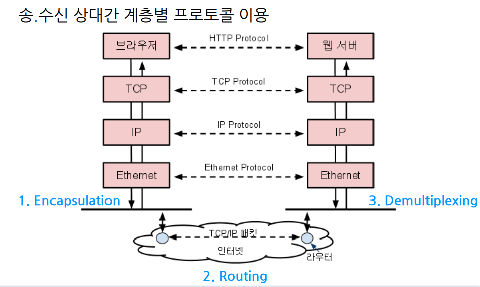 컴퓨터와 컴퓨터 사이에서 메시지를 전달하는 과정