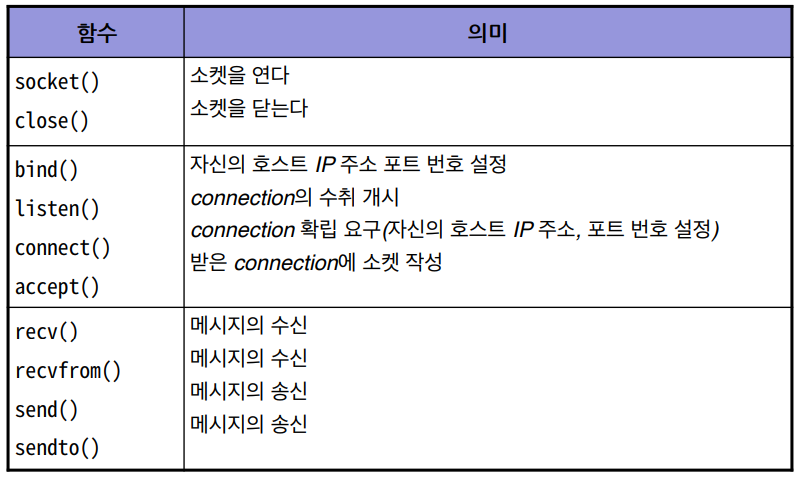 - 소켓(socket)은 네트워크를 통한 입/출력을 하기 위해 사용자에게 필요한 수단을 제공하는 응용 프로토콜 인터페이스