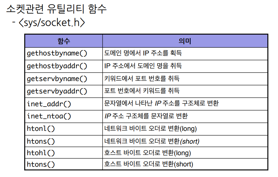 - 변수 : 구조체의 크기, Family Type, 소켓의 주소 데이터