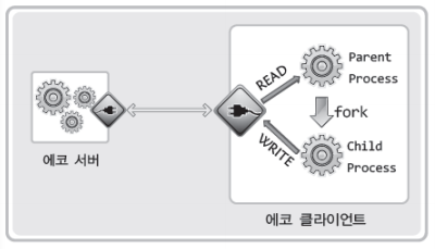 ● 1단계 : 에코 서버(부모 프로세스)는 accept 함수호출을 통해서 연결요처을 수락한다.